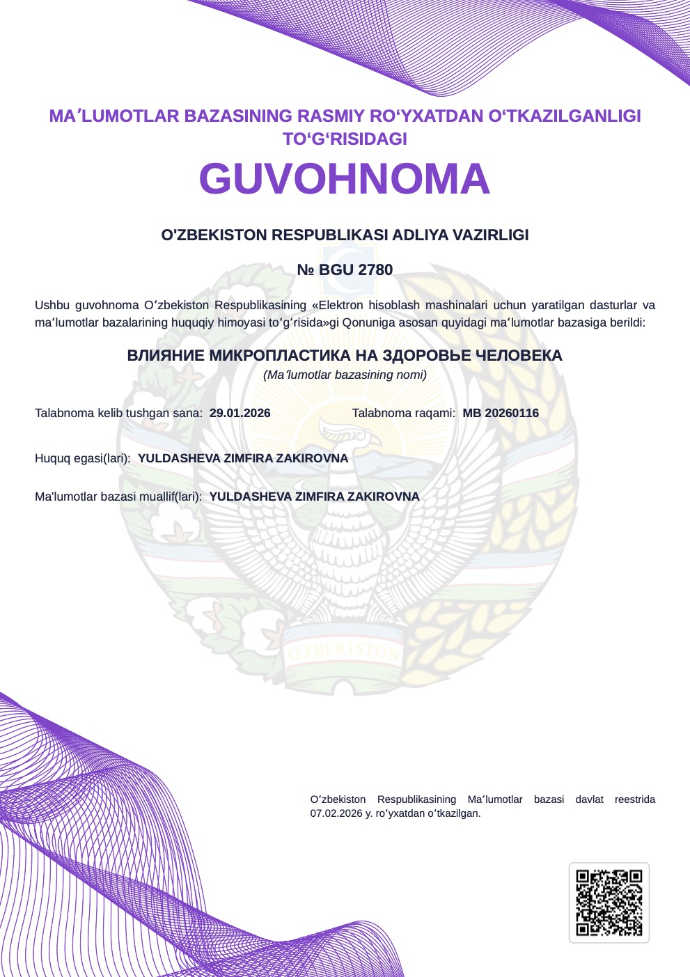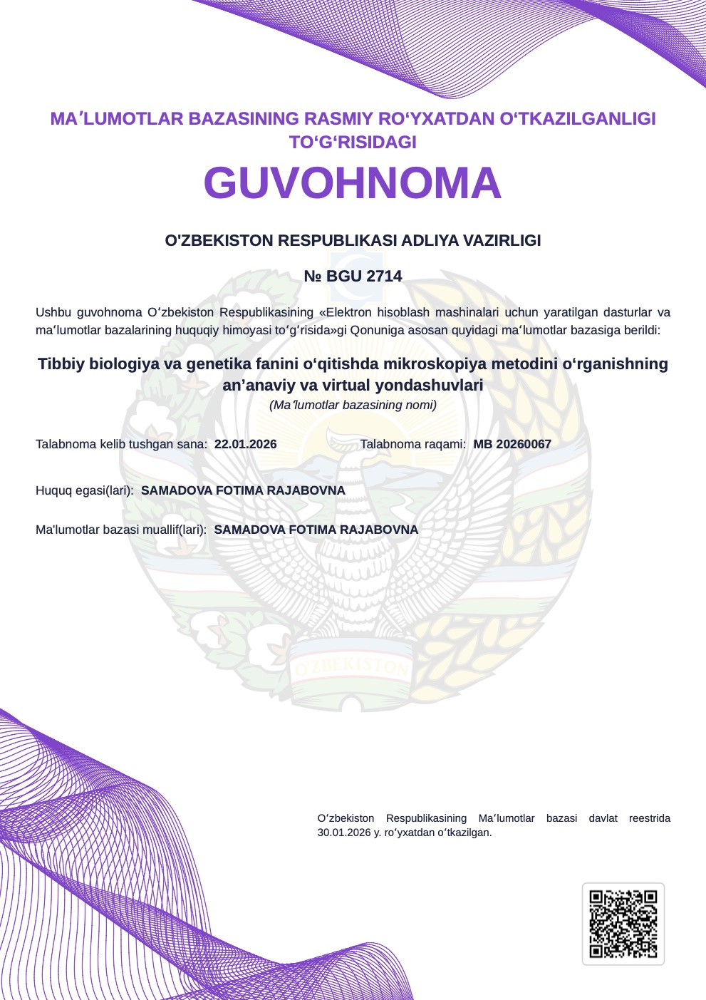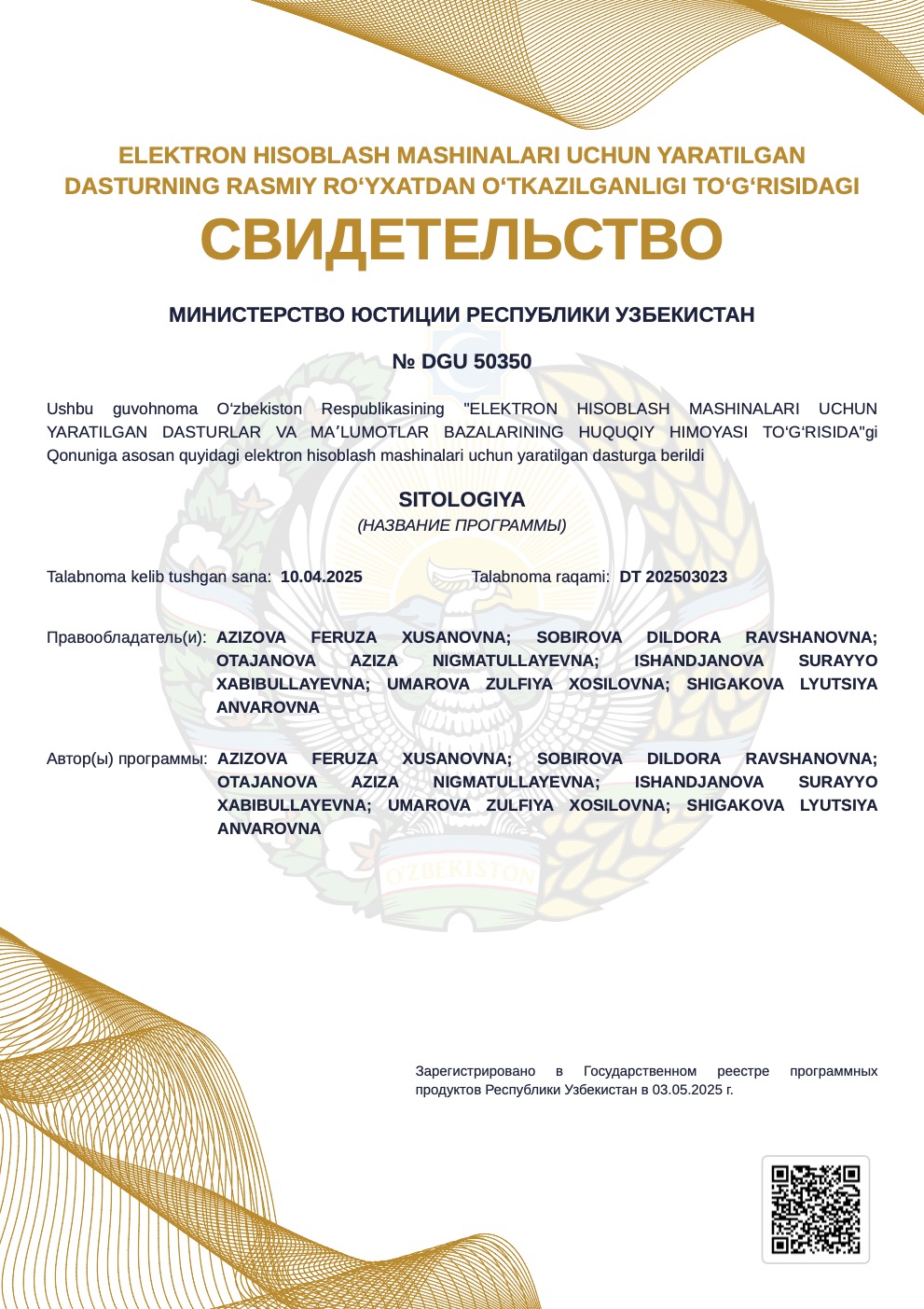 DGU No-50350 Азизова Ф.Х., Собирова Д.Р., Отажонова А.Н., Ишанджанова С.Х., Умарова.З.Х., Шигакова Л.А.,