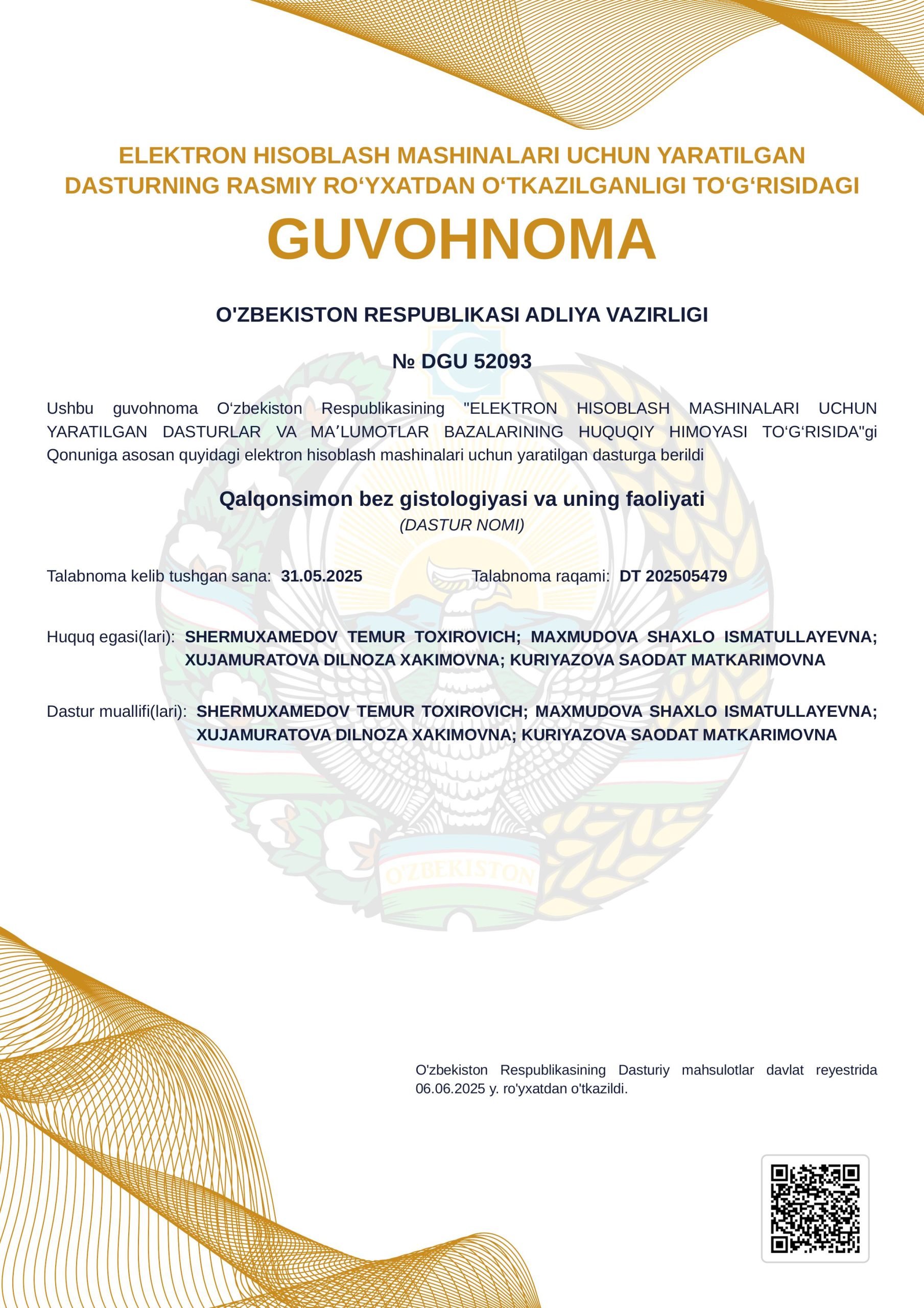 DGU No-52093 Курниязова С.М., Шермухаметов Т.Т., Махмудова Ш.И., Хужамуратова Д.Х.