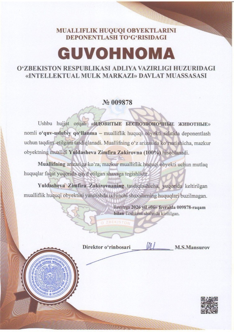 IP No-009878 Авторское свидетельство Юлдашева З.З.